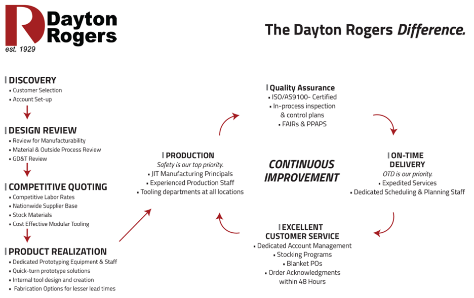 As pioneers in precision metalforming, Dayton Rogers introduced its vision of excellence in 1929 with a simple commitment – to create solutions that are integral to your success. Through the leadership, Dayton Rogers has core values, including: